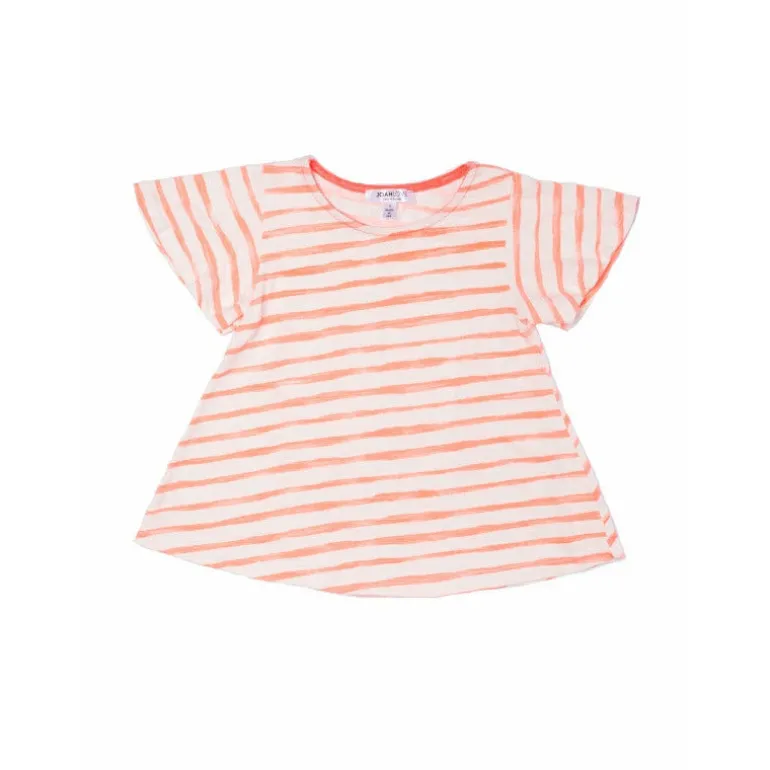 Stripe fluttered top. Preshrunk. Made in the beautiful USA.